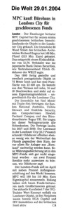 29.01.2004 Die Welt MPC kauft Bürohaus in Londons City für geschlossenen Fonds, ... mehr ... |