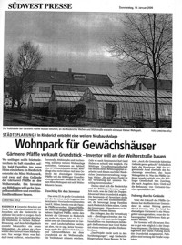 19.01.2006 SüdwestPresse Wohnpark für Gewächshäuser, ... mehr ... |